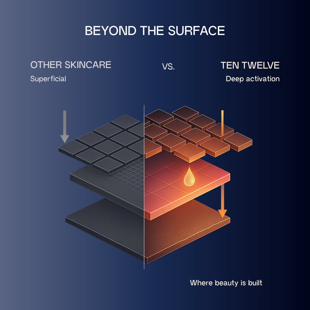 TEN TWELVE’s SMART BARRIER SYSTEM uses a proprietary transport mechanism to deliver actives beneath the barrier - right to the layers that drive regeneration, balance, and resilience.